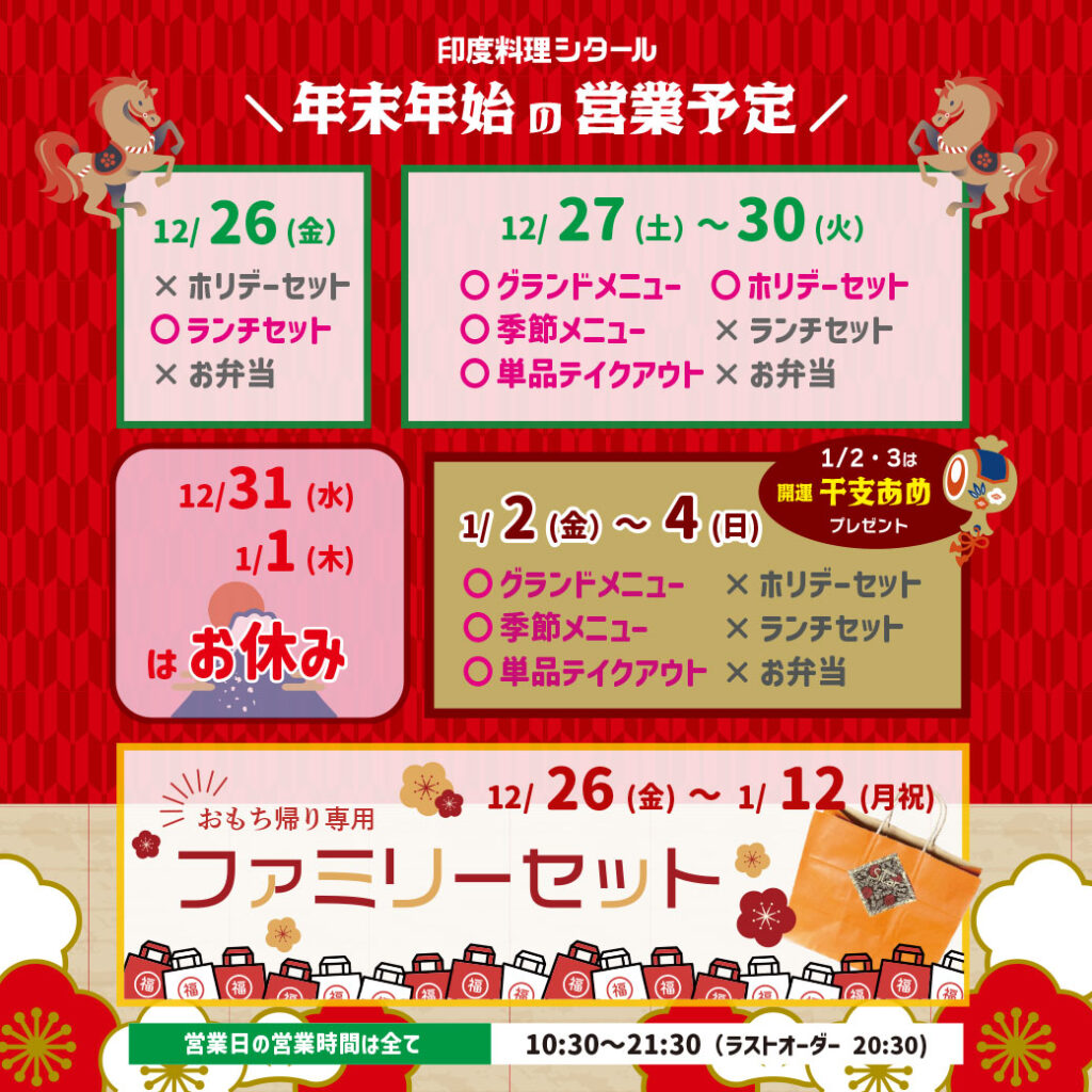 スパイス香る本格インド料理で、年末年始も心もお腹も満たしませんか?